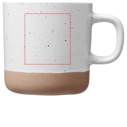 Keramikbecher mit unglasiertem Boden. Spülmaschinenfest EN12875-1 konform (bei bis zu 125 Waschvorgängen) für alle Werbeanbringungsmethoden. Das Fassungsvermögen beträgt 360 ml. Präsentiert in einer weißen Geschenkschachtel.