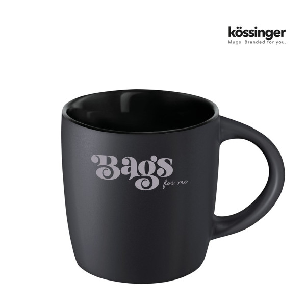 Kössinger Tasse Ennia Black Inside - Außen: mattschwarz - Innen: farbig. Die äußerst beliebte Werbetasse aus Keramik, überzeugt mit moderner, klarer Form. Besonderer Blickfang ist die mattschwarze Außenglasur. Serie Ennia mit verschiedenen Innen-und Außenfarben bietet über den Nutzwert und die Langlebigkeit des Artikels hinaus die Möglichkeit, Sammeltassen zu gestalten.