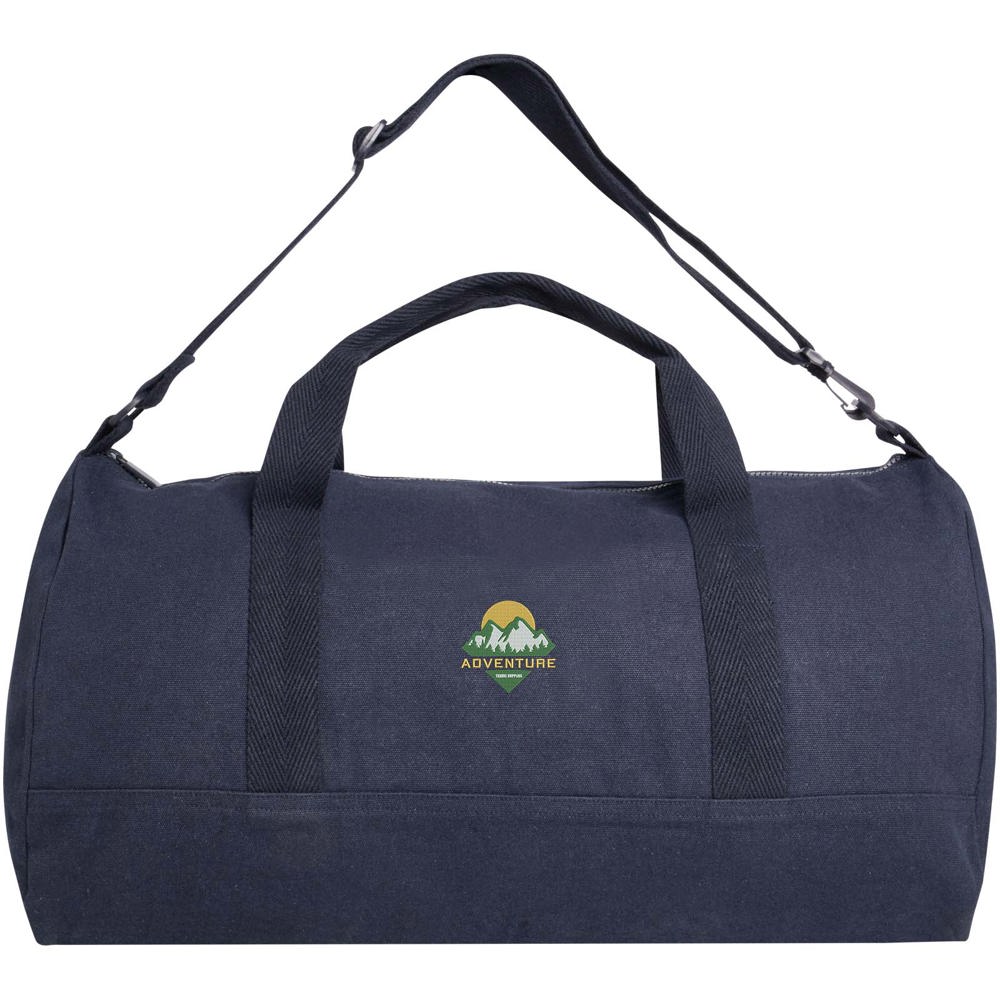 Die Porter Reisetasche aus 500 g/m² Recyclingbaumwolle und recyceltem Polyester verfügt über ein geräumiges Hauptfach für die optimale Aufbewahrung größerer Gegenstände und eine kleine Vordertasche für kleine Gegenstände wie Reisepass oder Telefon. Die Reisetasche kann sowohl an den beiden kurzen Tragegriffen als auch an dem längenverstellbaren und abnehmbaren Schultergurt getragen werden. Die Reisetasche enthält Cyclo®-Recyclingfasern aus vorsortierten Abfällen, die die Farbe des Garns bestimmen. Diese Fasern verringern nicht nur den Bedarf an neuen Rohstoffen, sondern sind auch Ausdruck des Engagements für eine Kreislaufwirtschaft und verkörpern das Wesen der Abfallvermeidung und der Förderung eines geschlossenen Kreislaufs. Jede Tasche wird außerdem mit einem Aware™ Tracer geliefert. Diese innovative Funktion ermöglicht es den Nutzern, die Herkunft und den Weg ihres Artikels mithilfe eines QR-Codes nachzuvollziehen, wodurch die Transparenz der Lieferkette erhöht und eine stärkere Verbindung zwischen dem Produkt und seinem Herstellungsprozess fördert. Fassungsvermögen: 50 Liter.