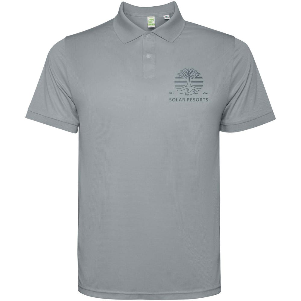 Kurzärmeliges Poloshirt für Herren. Verstärkte und verdeckte Nähte am Innenkragen. 1×1-Rippstrick an Bündchen und Kragen. Seitennähte. Knopfleiste mit 3 Knöpfen und Seitenschlitze.