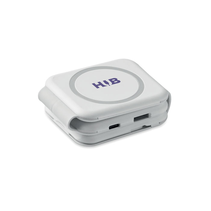 Magnetische Ladestation 3in1. ABS. Inkl. kabellose Ladestation 15W, Smartwatch-Ladegerät 3W (nur Apple®) und TWS-Ladegerät. 2 Typ-C- / 2 USB-A-Anschlüsse.
