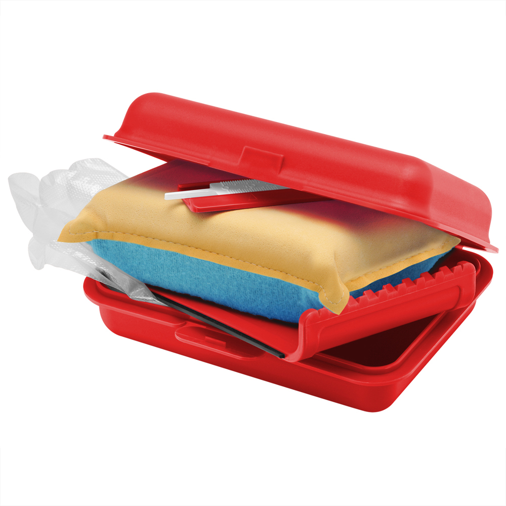 je 1 Profiltiefenprüfer, Eiskratzer, Autoschwamm, 1 Paar Einweghandschuhe in Kunststoffbox